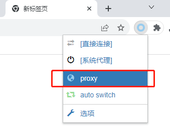 4、运行“SwitchyOmega” → 选择“proxy”。