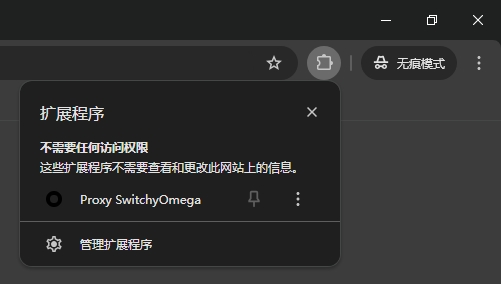 4、打开无痕模式窗口,即可正常使用“SwitchyOmega”配置代理。